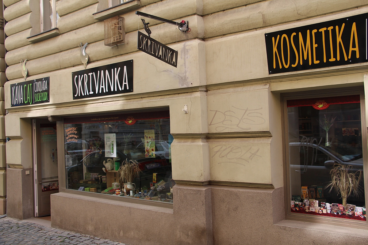 Vchod je přímo přes obchod s čaji SKŘIVANKA.